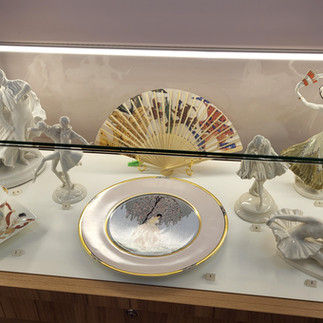 Фигурки из фарфора и бисквита, танцевальные костюмы, сценические украшения, книги, фото, посуда – всё на тему балета.